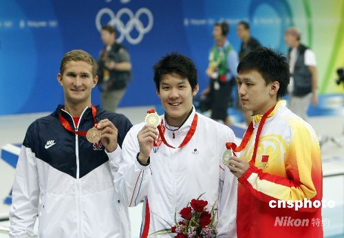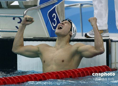 8月10日,韓國選手樸泰桓獲得北京奧運(yùn)會男子400米自由泳冠軍。中新社發(fā) 杜洋 攝