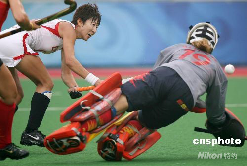 8月10日,中國(guó)女曲在奧運(yùn)會(huì)女子曲棍球小組賽首場(chǎng)比賽中以3:0戰(zhàn)勝西班牙隊(duì)。圖為中國(guó)隊(duì)在進(jìn)攻中。 中新社發(fā) 武仲林 攝