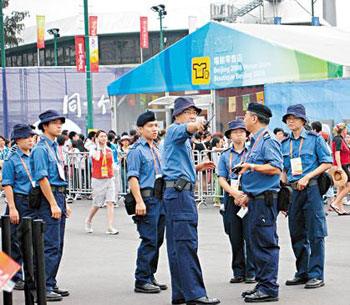 10日沙田馬術(shù)賽場都明顯加強(qiáng)保安,除了入口廣場每隔十步即有民安隊、警員和保安巡邏,看臺下更有十多名保安駐守出入口,而且有較多保安站崗,連警員巡邏也較頻密,有警員帶同警犬在廣場穿梭,而城門河畔也有警員巡邏,保安明顯較9日嚴(yán)密。