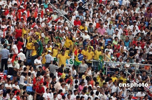 8月10日,北京奧運(yùn)會(huì)沈陽足球分賽場(chǎng)舉行男足預(yù)賽,因中國(guó)隊(duì)、巴西隊(duì)分別出戰(zhàn),場(chǎng)內(nèi)坐無虛席。中新社發(fā) 張宇 攝