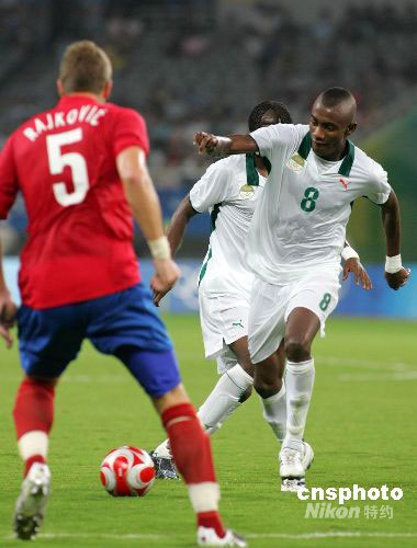 8月10日,北京奧運會上海足球分賽場男足預(yù)賽A組第二輪,科特迪瓦VS塞爾維亞的比賽在上海體育場進行。最終,首次參加奧運會的科特迪瓦隊以4:2戰(zhàn)勝塞爾維亞。中新社發(fā) 湯彥俊 攝
