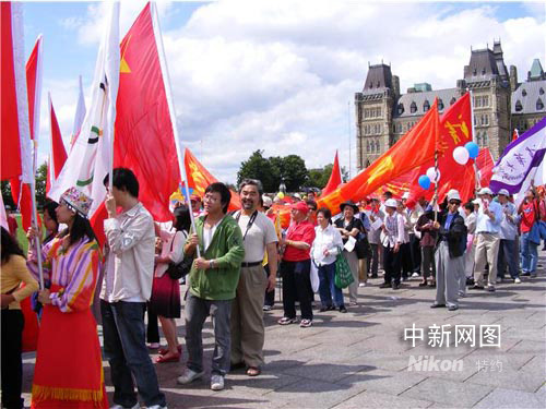 演出結(jié)束后游行開始,三組形態(tài)各異的獅子生龍活虎地在隊(duì)伍前面引路,身穿少數(shù)民族服裝的朋友高舉“同一個(gè)世界,同一個(gè)夢(mèng)想!”的橫幅緊隨其后,接著是彩旗儀仗隊(duì),幾十面奧運(yùn)五環(huán)旗、北京奧運(yùn)會(huì)旗及加中兩國國旗迎風(fēng)招展。人們揮動(dòng)手中的加中兩國國旗,熱情歡呼:中國加油!加拿大加油!北京奧運(yùn)加油!游行隊(duì)伍長(zhǎng)達(dá)一公里,最后到達(dá)渥太華市政廳。人們跳起秧歌,打起腰鼓,形成歡樂的海洋,一曲《歌唱祖國》表達(dá)了華人對(duì)祖國的思念;顒(dòng)結(jié)束時(shí),無數(shù)彩色氣球飄向空中,帶走渥太華華人對(duì)奧運(yùn)的祝福,對(duì)祖國的祝福!(完)