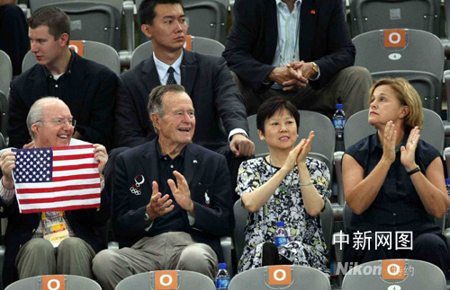 圖:老布什北京觀看男子體操團(tuán)體決賽