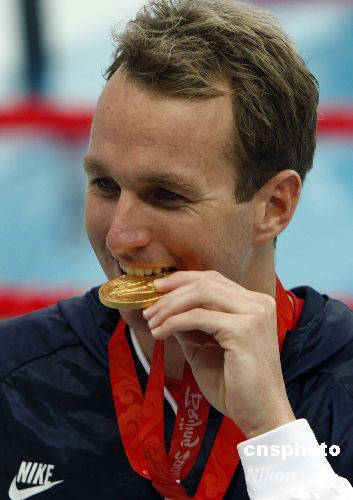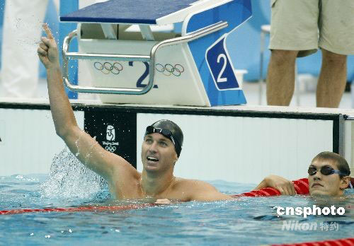 8月12日,北京奧運會男子100米仰泳決賽,美國選手佩爾索爾以52秒54的成績打破今年7月由他自己創(chuàng)造的52秒89的世界紀(jì)錄,獲得金牌。中新社發(fā) 杜洋 攝