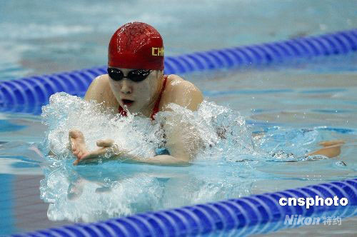 8月12日,中國(guó)小將孫曄在北京奧運(yùn)會(huì)女子100米蛙泳決賽中,以1分08秒08的成績(jī)獲得第7名。澳大利亞名將瓊斯獲得該項(xiàng)目金牌。中新社發(fā) 杜洋 攝