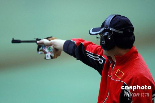 8月12日,在北京奧運(yùn)男子50米手槍決賽中,韓國(guó)選手以660.4環(huán)的總成績(jī)獲得金牌,中國(guó)選手譚宗亮在韓國(guó)選手失誤的情況下,未能把握住機(jī)會(huì),以659.5環(huán)的總成績(jī)獲銅牌。中新社發(fā) 盛佳鵬 攝