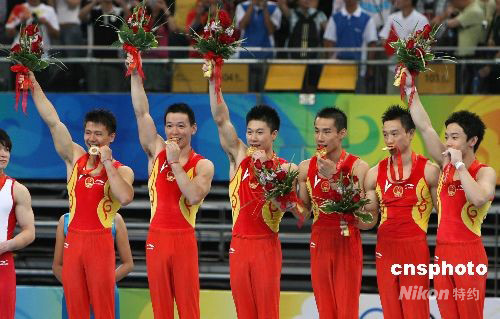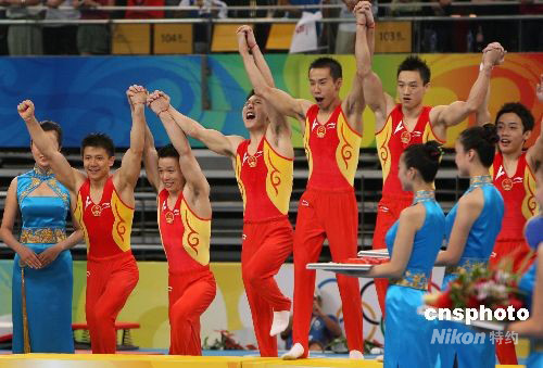 中國勇奪體操男團金牌 隊員齊品"金鑲玉"