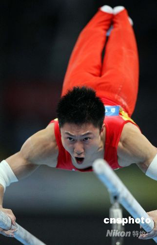 8月12日,北京奧運(yùn)會體操男子團(tuán)體決賽在國家體育館展開,中國男子體操隊(duì)繼悉尼奧運(yùn)之后再次登頂,以286.125 分獲得金牌,有中國“雙杠王”之稱的李小鵬在雙杠比賽中獲高分。中國體操名將李小鵬也超越李寧,成為獲得世界冠軍最多的中國體操選手。李寧的世界大賽金牌為14枚,李小鵬達(dá)到15枚。 中新社發(fā) 任晨鳴 攝