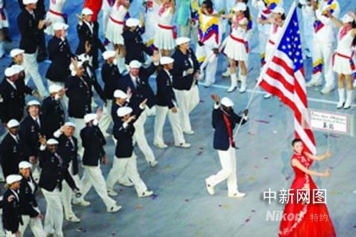 圖為周旦妮帶領(lǐng)美國隊入場。