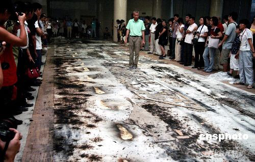 八月十二日晚,世界著名華裔藝術家、北京奧運會視覺特效藝術總設計蔡國強先生在福建泉州爆破他的又一新作“歷史足跡”。這次蔡國強把在北京奧運會開幕式上令世界人民印象深刻的古今同步、跨越時空的二十九個腳印呈現在家鄉(xiāng)人面前。中新社發(fā) 傅丹丹 攝