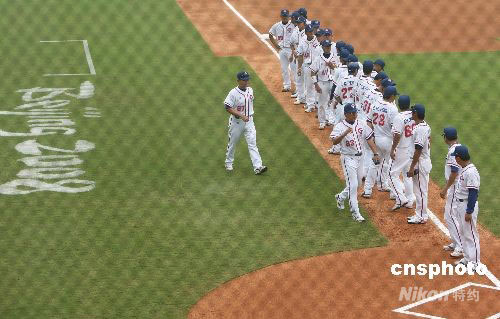 8月13日,北京奧運會棒球比賽揭幕戰(zhàn)在中華臺北隊和荷蘭隊之間舉行。圖為中華臺北隊亮相。中新社發(fā) 武仲林 攝
