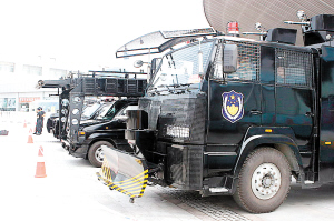 目前,本市(天津)特警300余人24小時(shí)護(hù)衛(wèi)奧運(yùn)會(huì)天津賽區(qū)安全。昨天,記者探訪了在水滴實(shí)施護(hù)衛(wèi)的特警突擊車、裝甲車、運(yùn)兵車和水炮車。