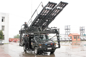 特警突擊車,又稱反恐突擊車或是快速升降車。由于這輛新型的特警裝備車能夠根據(jù)需要實(shí)施變形,特警們更喜歡稱此車為“特警汽車人”。突擊車由底盤和多功能梯組成,多功能梯采用模塊化結(jié)構(gòu)設(shè)計(jì),不但可以安裝在多種底盤平臺(tái)上,而且可以實(shí)現(xiàn)不同的戰(zhàn)術(shù)組合。靈活多變的坡面、梯子、越障板,可以實(shí)現(xiàn)多人、多層次、多方向的高空突破、人質(zhì)救援、反劫機(jī)作戰(zhàn),尤其是此車可以在快速行進(jìn)中調(diào)節(jié)和伸展坡面,完全適應(yīng)反恐實(shí)戰(zhàn)的要求。