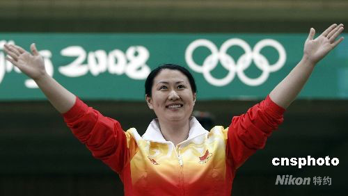 圖:陳穎奧運(yùn)女子25米手槍摘金笑容燦爛