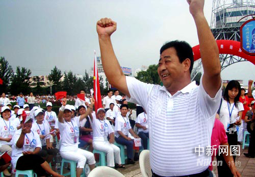 中新網(wǎng)新泰8月13日電(記者 胡洪林 張璐 通訊員 褚成東)在今天下午第29屆奧運會男子雙人3米跳板決賽過程中,遠(yuǎn)在家鄉(xiāng)的王峰父母一直緊張地在山東省新泰市中心電視塔廣場透過大屏幕觀看兒子的比賽。當(dāng)王峰和秦凱雙人組合獲得金牌一霎那,王峰52歲的父親王道軍激動地從座椅上站了起來,揮舞雙拳高聲為王峰加油,為北京加油,為奧運加油。