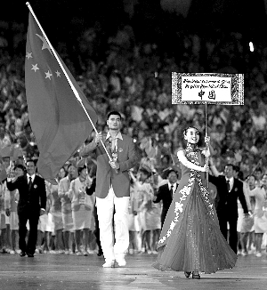 開幕式上,于佩舉牌引導(dǎo)中國代表團(tuán)入場。Paul Gilham攝