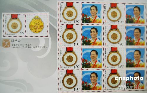 2008年8月14日,奧運(yùn)舉重冠軍陳艷青“金牌運(yùn)動(dòng)員”即時(shí)版?zhèn)性化郵品在蘇州正式發(fā)行,受到市民的熱烈追捧。 中新社發(fā) 朱子寒 攝