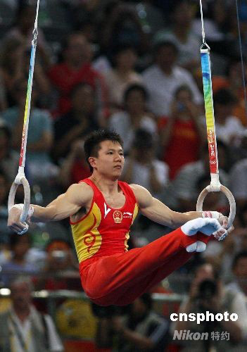 8月14日,北京奧運會體操男子個人全能決賽中,中國小將陳一冰未能發(fā)揮出水平,以總分74.225意外墊底。中新社發(fā) 武仲林 攝