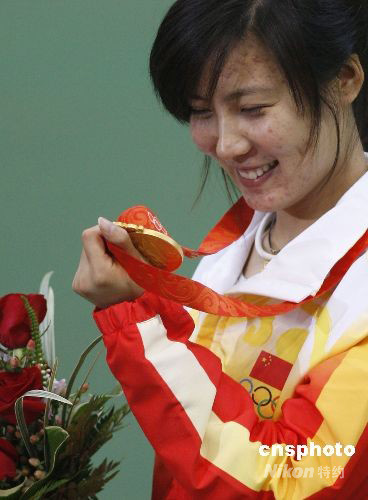 杜麗細(xì)看金牌“成色” 。中新社發(fā) 盛佳鵬 攝