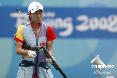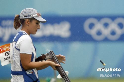 8月14日下午,北京奧運(yùn)會女子飛碟雙向決賽在北京射擊場飛碟靶場舉行,世界杯總決賽冠軍中國選手魏寧無緣三甲名列第六。意大利選手基婭拉-卡伊內(nèi)羅通過單發(fā)決賽擊敗美國選手羅德-金伯莉和德國選手克里斯蒂娜-布林克爾,以93中獲得冠軍。 中新社發(fā) 盛佳鵬 攝