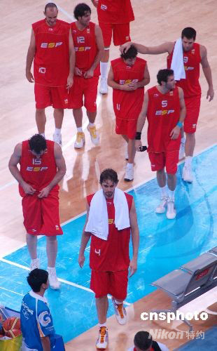 2008年8月14日上午,加索爾領銜的世錦賽和歐錦賽冠軍西班牙隊在奧運會籃球小組賽中,以72比59戰(zhàn)勝諾維斯基領銜的德國戰(zhàn)車。 中新社發(fā) Eddie Zhang 攝