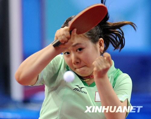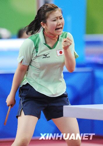 8月14日,在北京奧運(yùn)會乒乓球女子團(tuán)體項(xiàng)目小組賽第二輪比賽中,日本隊(duì)經(jīng)過艱難苦戰(zhàn)以3比2戰(zhàn)勝西班牙隊(duì)。日本隊(duì)主力球員福原愛兩次上場,一勝一負(fù)。新華社記者徐家軍攝