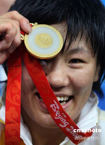 8月14日晚,中國(guó)女子柔道名將楊秀麗在北京奧運(yùn)會(huì)女子柔道78公斤級(jí)決賽中擊敗古巴名將亞倫妮斯·卡斯蒂略獲得冠軍,將金牌收入囊中。中新社發(fā) 任晨鳴 攝