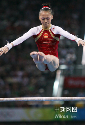 第二個(gè)項(xiàng)目高低杠是柳金的“拿手好戲”,身形修長(zhǎng)的她杠上動(dòng)作非常優(yōu)美,團(tuán)體決賽中她在這個(gè)項(xiàng)目上拿到過(guò)十六點(diǎn)九的最高分,但今天的比賽中她落地有些不穩(wěn),得到十六點(diǎn)六五分!叭芘酢毙ざ鳌ぜs翰遜在這個(gè)自己的唯一弱項(xiàng)上只拿到十五點(diǎn)二七五分。江鈺源克服了跳馬失利的陰影,高低杠上發(fā)揮正常,得到十五點(diǎn)八七五分。楊伊琳則以行云流水的動(dòng)作和優(yōu)美的空中姿態(tài)拿到十六點(diǎn)七二五的單項(xiàng)最高分,總分三十一點(diǎn)九00力壓柳金暫列第一。