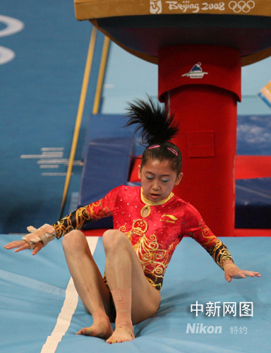 圖為中國(guó)選手江鈺源在高低杠比賽中。