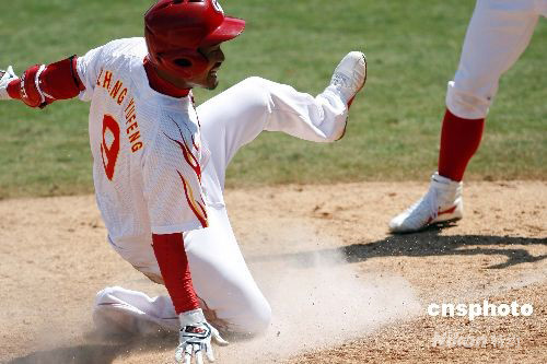 8月15日上午,北京奧運會棒球男子預賽,中國隊與中華臺北隊的比賽在北京五棵松棒球場舉行。中新社發(fā) 盛佳鵬 攝