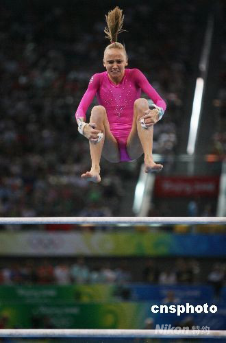 8月15日,北京奧運會體操女子個人全能決賽,美國選手娜斯佳·柳金以63.325總分獲得金牌。中新社發(fā) 武仲林 攝