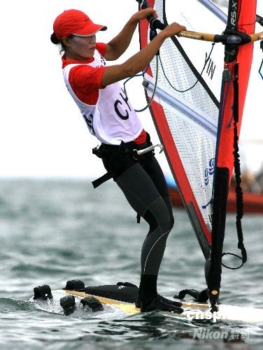 8月15日,青島奧帆中心,大型帆船托納多級和星級首次進入比賽,中國選手首次露面。男女帆板各國選手繼續(xù)激烈競爭,中國女子帆板殷劍努力拼爭,試圖保持自己的總排名第一位置,奪金有望。中新社發(fā) 肖冰 攝