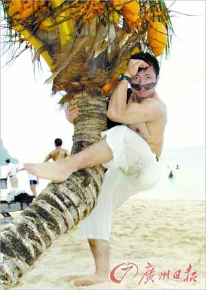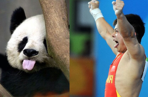 網(wǎng)友將《功夫熊貓》中大熊貓?jiān)汀皾L滾”的吐舌照與龍清泉在比賽時(shí)的調(diào)皮照放在一起,并為這名新科冠軍取名“龍滾滾”。聽(tīng)說(shuō)這一綽號(hào)后,龍清泉開(kāi)心地笑納:“是挺像!真的!”