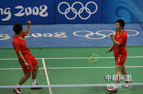 8月15日晚,中國組合杜婧、于洋在北京奧運(yùn)會(huì)羽毛球女子雙打決賽中以2比0戰(zhàn)勝韓國組合李孝貞、李敬元,奪得金牌。中新社記者 武仲林 攝