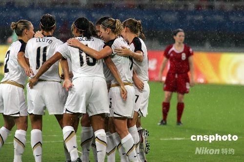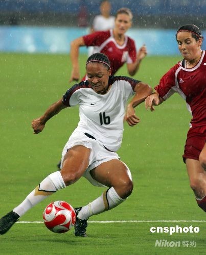 8月15日,北京奧運(yùn)會(huì)女足,美國VS加拿大的比賽在上海體育場(chǎng)進(jìn)行。最終,美國隊(duì)以2:1戰(zhàn)勝加拿大隊(duì),挺進(jìn)四強(qiáng)。中新社發(fā) 湯彥俊 攝