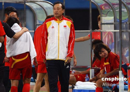 8月15日晚,北京奧運會女子足球1/4決賽,中國對日本的比賽在秦皇島奧體中心舉行,最終中國隊0:2負(fù)于日本隊,失去進入四強的機會。中新社發(fā) 劉新 攝