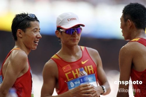 中國三名選手王浩、禇亞飛與董吉敏無緣獎(jiǎng)牌。中新社發(fā) 盛佳鵬 攝