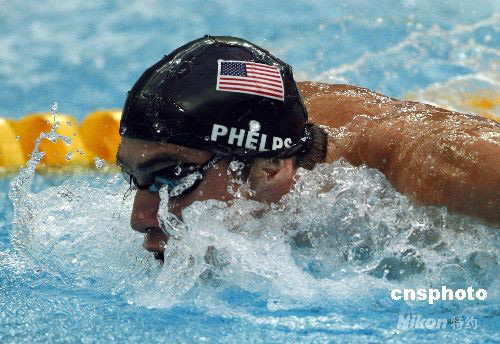 8月16日,北京奧運會男子100米蝶泳決賽中,美國選手菲爾普斯以50秒58摘取其第七枚金牌,距離自己的奧運會八金夢想僅有一“金”之遙。 中新社發(fā) 杜洋 攝