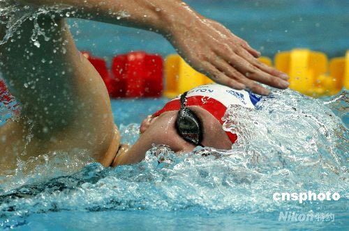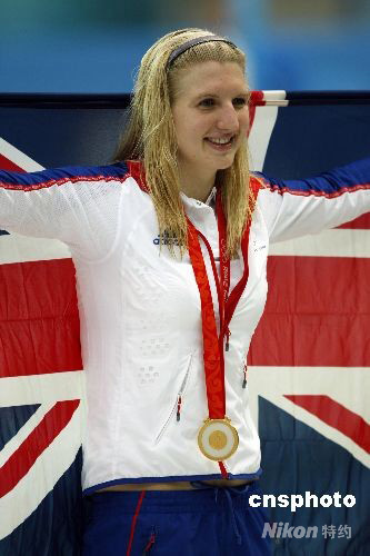 8月16日,在北京奧運會女子800米自由泳決賽中,英國名將阿德林頓以8分14秒10奪取冠軍,打破由前美國名將埃文斯保持的塵封19年的世界紀錄。意大利選手菲利皮8分20秒23獲得銀牌,丹麥選手弗里斯以8分23秒03列第三。中國選手李玄旭8分26秒34排名第五。 中新社發(fā) 杜洋 攝
