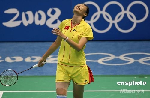 8月16日,中國(guó)選手張寧在北京奧運(yùn)會(huì)羽毛球女單決賽中戰(zhàn)勝隊(duì)友謝杏芳,奪得冠軍。中新社記者 武仲林 攝