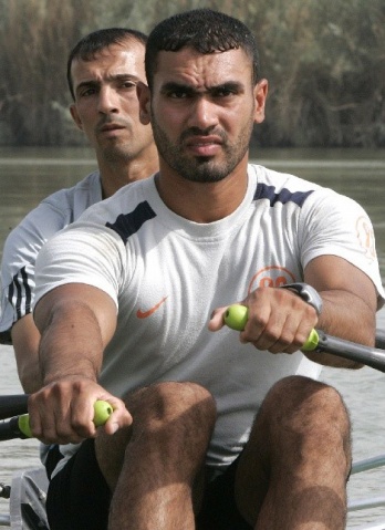 伊拉克賽艇運(yùn)動員穿著舊T恤比賽。