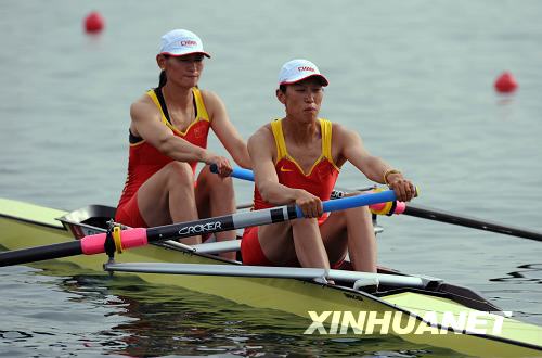 8月16日,中國(guó)選手吳優(yōu)/高玉蘭在順義奧林匹克水上公園進(jìn)行的北京奧運(yùn)會(huì)賽艇女子雙人單槳A組決賽中奪得亞軍。新華社記者王雷攝
