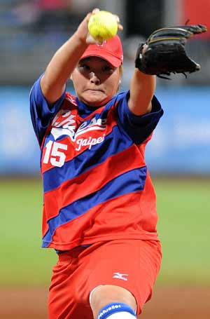 北京奧運(yùn)女子壘球比賽中華臺(tái)北隊(duì)于14日晚間出戰(zhàn)委內(nèi)瑞拉隊(duì),投手闕明慧擔(dān)任救援,成功封鎖對(duì)手打擊。(下圖)