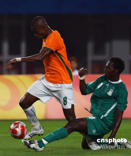 8月16日晚,北京奧運會男子足球1/4決賽,尼日利亞對陣科特迪瓦的比賽在秦皇島奧體中心舉行,最終尼日利亞2:0勝科特迪瓦,挺進四強。中新社發(fā) 劉新 攝