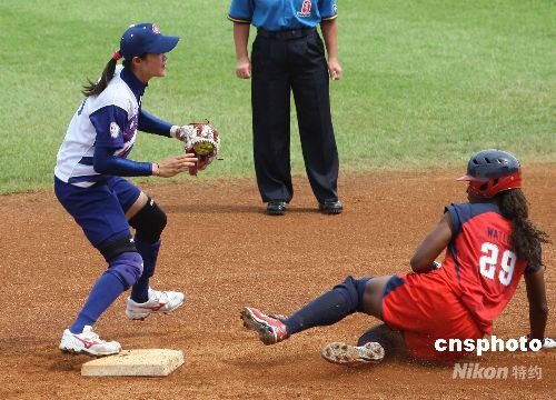 8月16日,在北京奧運壘球賽中,中華臺北隊對戰(zhàn)美國隊,結(jié)果以0比7大比分?jǐn)〗o對手。中新社發(fā) CNAsports 攝