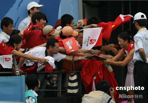 圖為鄭潔晏紫給現(xiàn)場觀眾簽名。