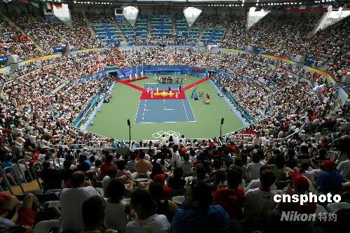 8月17日,北京奧運會網(wǎng)球女單、男單決賽隆重上演,中心球場座無虛席。 中新社發(fā) 武仲林 攝