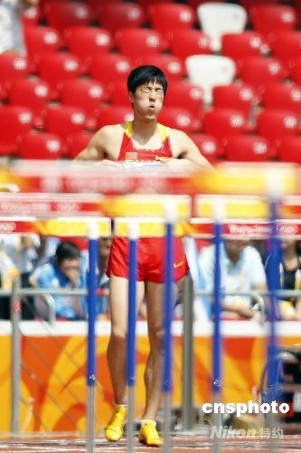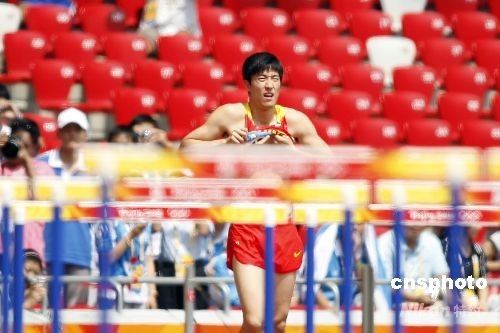 8月18日上午,在北京奧運(yùn)男子110米欄第1輪第6組比賽中,中國選手劉翔因腿傷遺憾退出比賽。