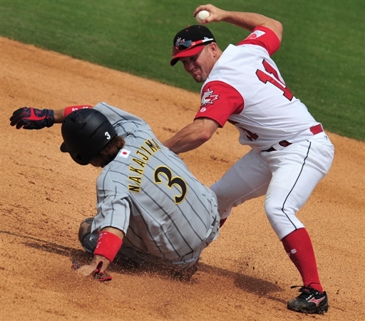 8月18日,在五棵松棒球場舉行的北京奧運會棒球預(yù)賽中,日本隊以1比0戰(zhàn)勝加拿大隊。
