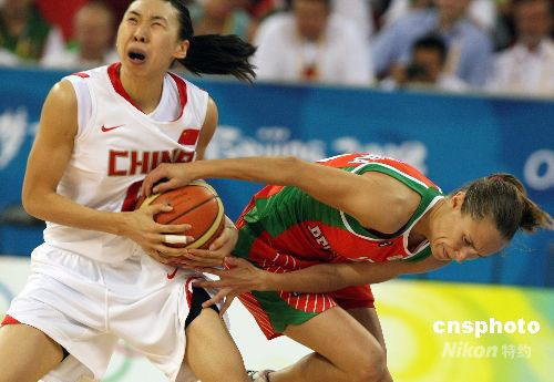 8月19日下午,北京奧運(yùn)會女子籃球四分之一淘汰賽在北京五棵松籃球館舉行,中國女籃以77比62擊敗白俄羅斯率先進(jìn)入前四強(qiáng),隊(duì)長苗立杰砍下球隊(duì)全場最高的28分。 中新社發(fā) 任晨鳴 攝